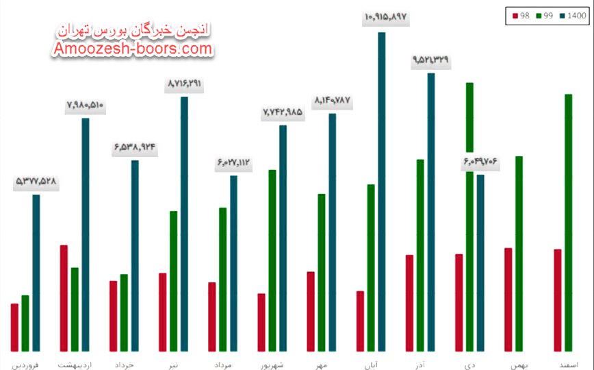 شرکت پلی پروپیلن جم طی عملکرد 1 ماهه منتهی به 1400/12/29 معادل 8,633,905 میلیون ریال از محصولات خود را به فروش رسانده است که نسبت به دوره 1 ماهه مشابه سال قبل تغییری نداشته و نسبت به متوسط 11 ماه گذشته سال 12% شد نشان می دهد.مقدار فروش جم پیلن در این ماه با رشد 28 درصدی نسبت به ماه بهمن همراه شد. نرخ فروش پلی پروپیلن با بسته بندی پالت شرکت در اسفند با افت 8 درصدی نسبت به بهمن به رقم 36.6 میلیون تومان در هر تن رسید.