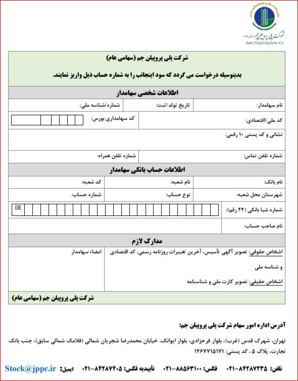 بدینوسیله به اطلاع کلیه سهامداران محترم شرکت پلی پروپیلن جم (نماد جمپیلن) می رساند پرداخت باقیمانده سودعملکرد سال مالی منتهی به۱۳۹۸/۱۲/۲۹به روش زیر پرداخت می گردد