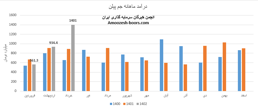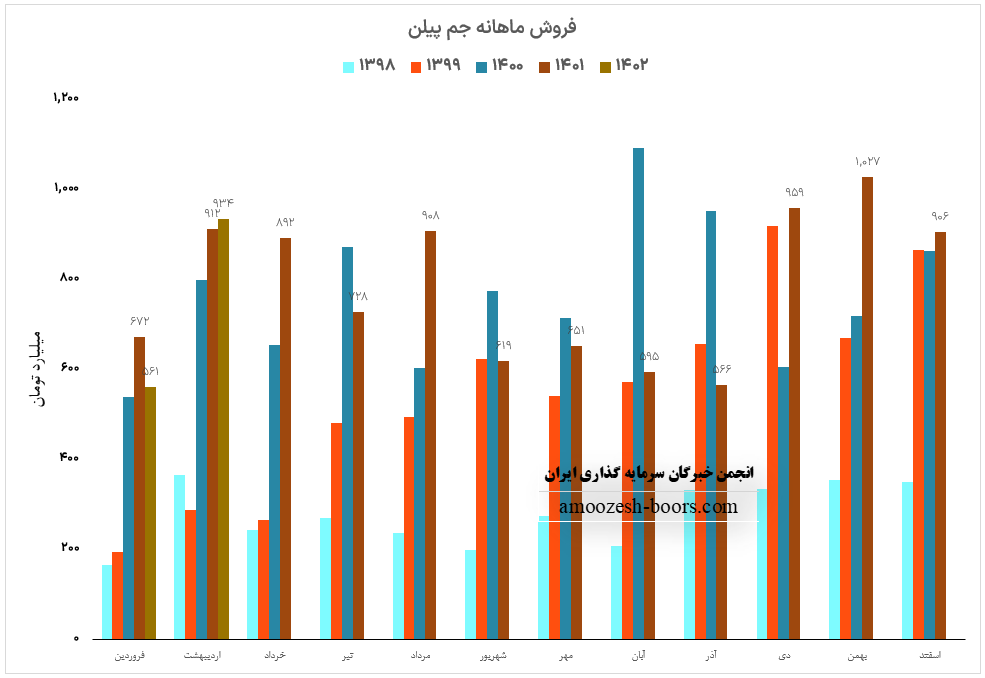 عملکرد ماهانه نماد جم پیلن ( پروپیلن جم ) به 1401 میلیارد تومان رسیده که علاوه بر حفظ تداوم روند صعودی در گزارش ماهانه موفق به ثبت رکورد جدیدی در فروش گردیده است، به طوری که فروش ماهانه جم پیلن نسبت به ماه گذشته 50%، نسبت به متوسط ماهانه 87% و نسبت به مدت مشابه سال گذشته 57% رشد داشته است، تمامی فروش پتروشیمی جم پیلن از طریق فروش داخلی تامین گردیده است و عمدتا بر فروش پلی پروپیلن با بسته بندی پالت استوار بوده است، نرخ فروش این محصول با رشد 6 درصدی و میزان فروش آن با افزایش 43 درصدی همراه بوده است، تحلیل بنیادی سهم جم پیلن نشان میدهد که مجموع عملکرد 3 ماهه در مقایسه با مدت مشابه افزایش 17 درصدی داشته و طی این مدت 31% از کل فروش سال گذشته تحقق یافته است.