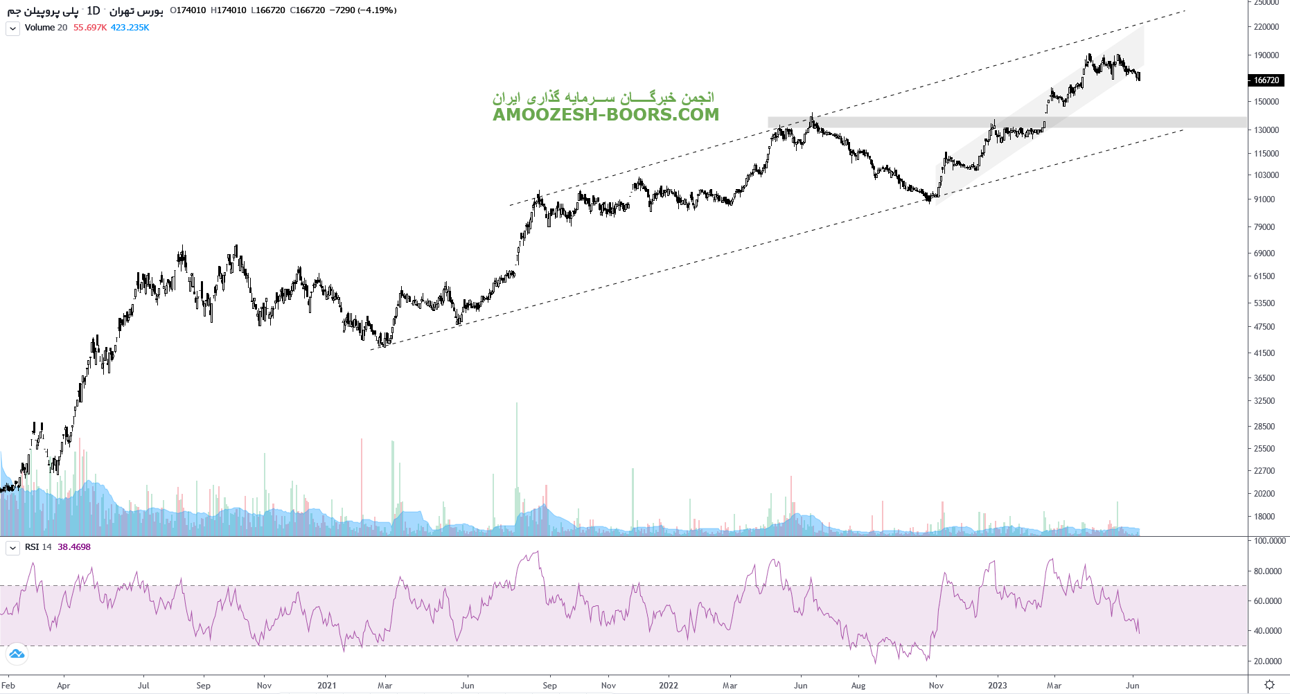 قیمت سهم جمعیت پس از خروج از کانال صعودی کوتاه مدت خود اکنون مستند اصلاح بیشتر تا ناحیه حمایتی ۱۳,۵۰۰ تومان میباشد لذا در صورت حفظ این ناحیه حمایتی، اولین مقاومت سهم جم پیلن ناحیه ۲۲۰۰۰تومان تلقی خواهد شد همچنین در صورت برگشت مجدد به درون کانال این مقاومت معتبر می باشد.