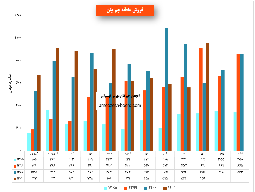 نماد جم پیلن با ثبت فروش 6545 میلیارد تومانی در پایان 9 ماهه سال توانست حدود 66 % از پیش بینی فروش سالانه خود را محقق سازد.