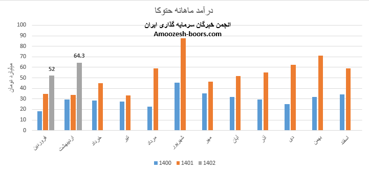 درآمد نماد حتوکا در گزارش ماهانه منتهی به تیر ماه سال 1402 برابر با 59.3 میلیارد تومان گزارش شده است که در مقایسه با ماه گذشته 12%، نسبت به متوسط ماهانه 5% و نسبت به مدت مشابه 77% رشد را نشان میدهد، مجموع عملکرد 4 ماهه سهم حتوکا در مقایسه با 4 ماهه ماه گذشته از افزایش 55 درصدی برخوردار بوده و طی این مدت 36% از کل درآمد سال قبل تحقق یافته است.