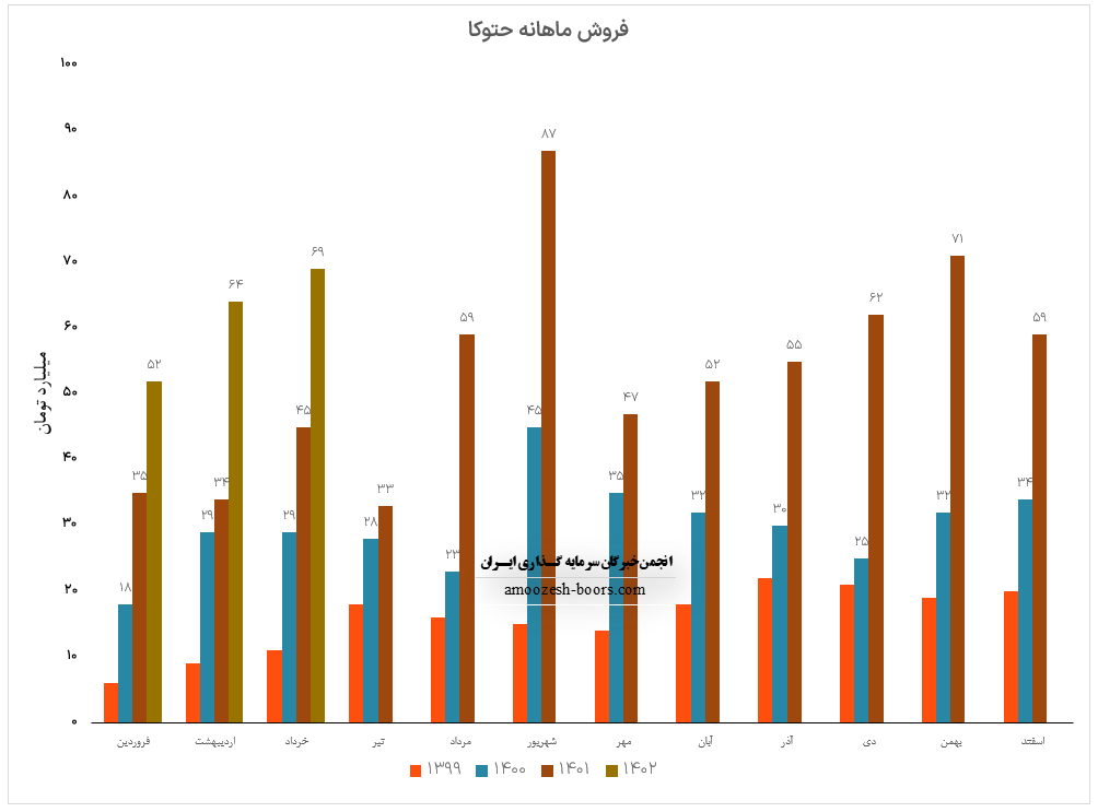 نماد حتوکا طی عملکرد ماهانه 63.2 میلیارد تومان را شناسایی نموده است که نسبت به ماه گذشته و همچنین مرداد ماه سال گذشته 7% رشد داشته است، میزان فروش ماهانه سهم حتوکا در مقایسه با متوسط ماهانه نیز 11% افزایشی بوده است، عمده درآمد حتوکا از طریق درآمد مکانیسم ها به دست آمده که در مقایسه با ماه گذشته کاهش 6 درصدی داشته است.