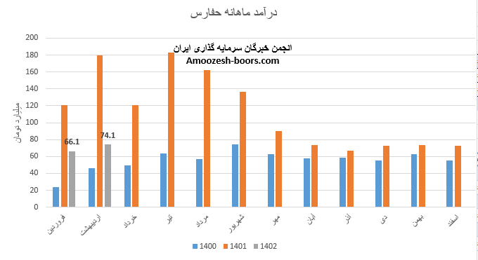 عملکرد ماهانه نماد حفارس در اردیبهشت ماه سال 1402 برابر با 74.1 میلیارد تومان بوده که هرچند نسبت به ماه گذشته 12% رشد داشته اما همچنان نسبت به مدت مشابه افت 59 درصدی دارد، مجموعا عملکرد دو ماهه سهم حفارس نسبت به مدت مشابه کاهش 53 درصدی داشته و تنها 10% از کل درآمد سال گذشته تحقق یافته است.