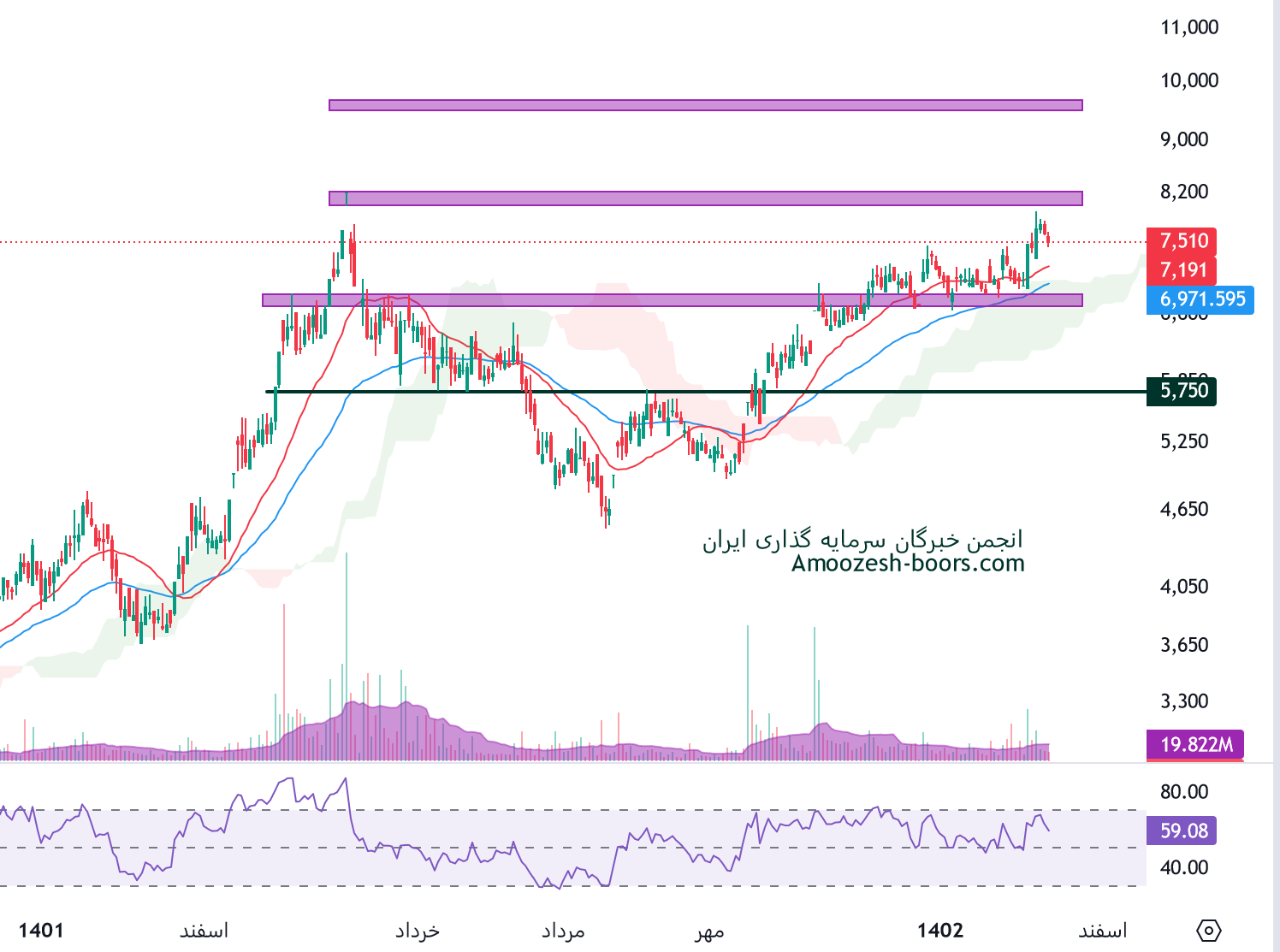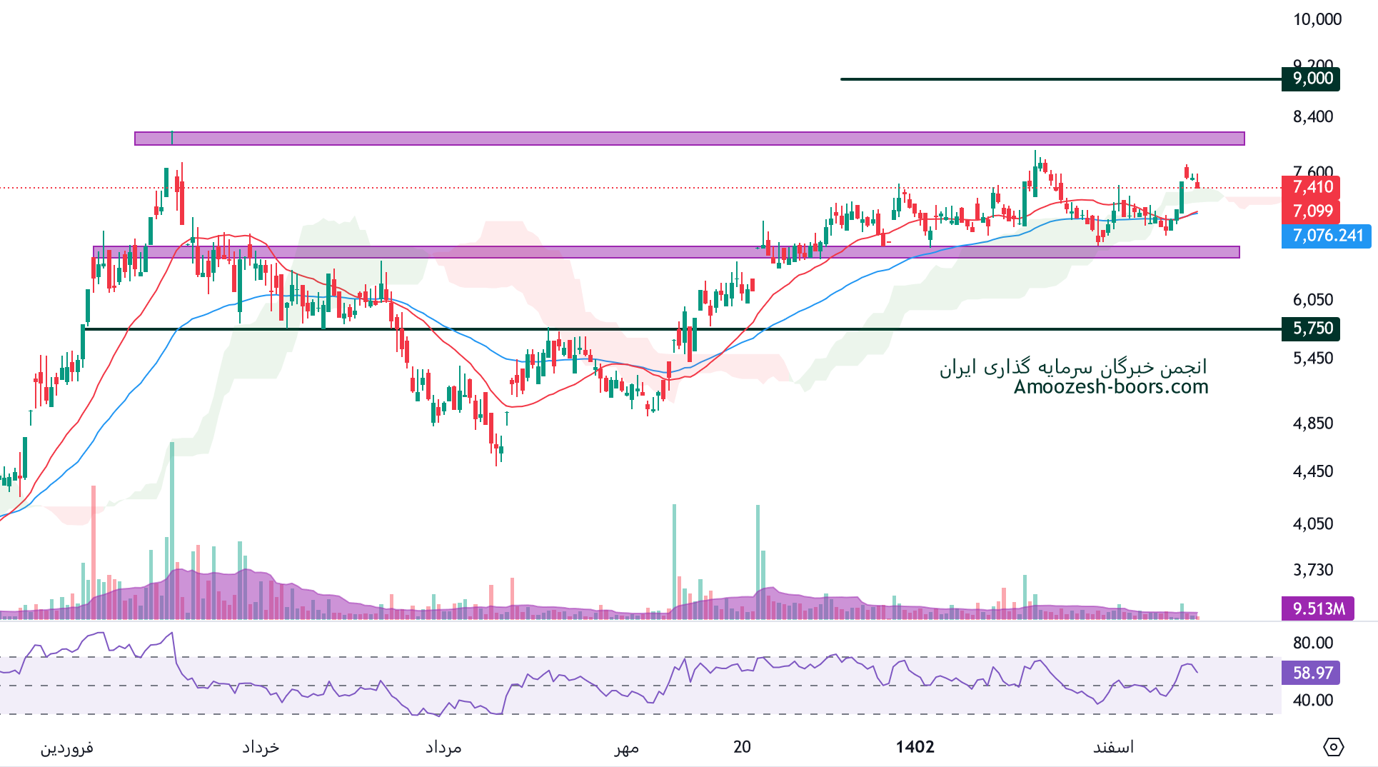 زمانی که پتانسیل برای شکست هر یک از سطوح فراهم شود در سناریوی بد بینانه و از بین رفتن حمایت کف، حمایت بعدی حفاری 5750 ریال و در صورت شکست سقف مقاومت بعدی سهم حفاری 9000 ریال در نظر گرفته خواهند شد.