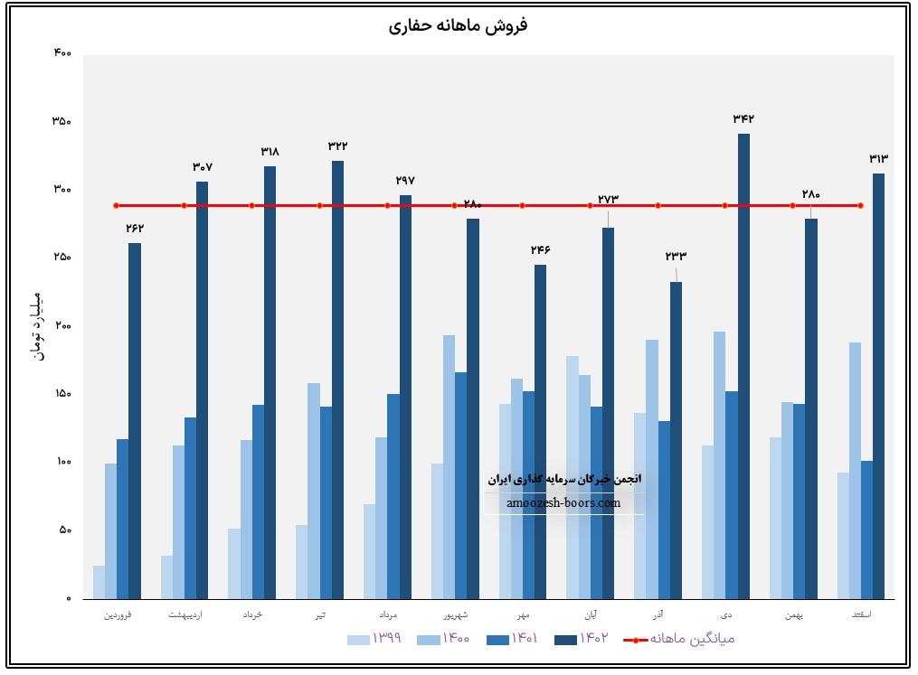 شرکت حفاری شمال ( حفاری ) در بهمن ماه 1402 فروش 280 میلیارد تومانی را به دست آورده که کاهش 18 درصدی در مقایسه با ماه گذشته و همچنین رشد 0.5 درصدی نسبت به متوسط ماهانه داشته است،