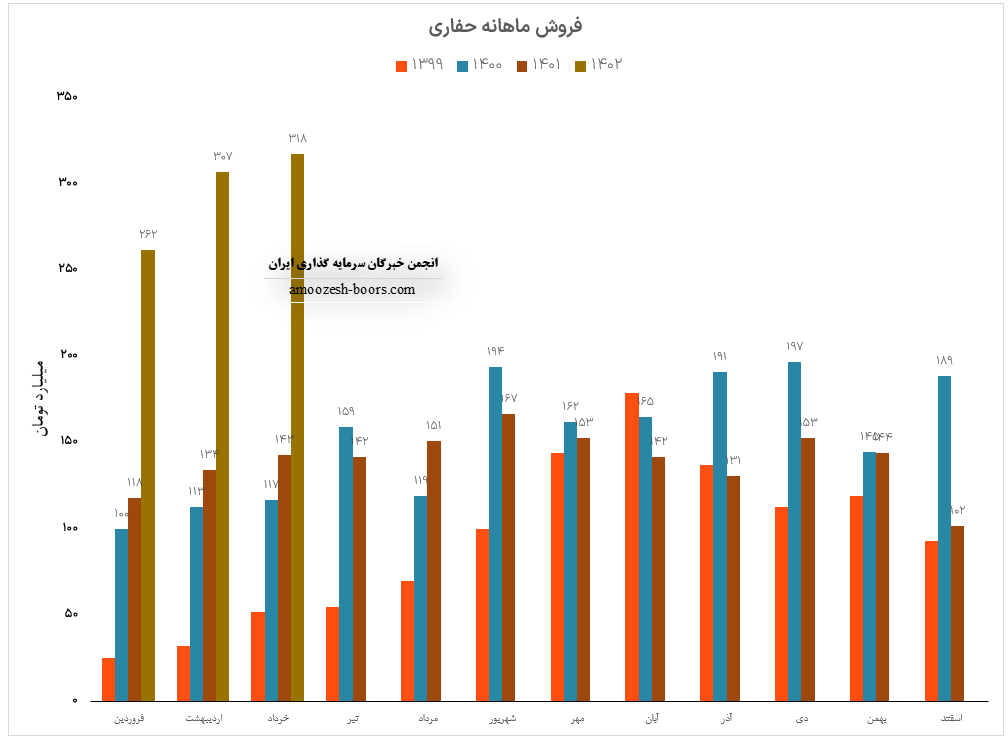 نماد حفاری طی گزارش فعالیت ماهانه تیر ماه سال 1402 به درآمد 322.4 میلیارد تومانی دست یافته است که در مقایسه با ماه گذشته 1%، نسبت به متوسط ماهانه 8% و نسبت به مدت مشابه 126% افزایش را تجربه نموده است، مجموع عملکرد 4 ماهه سهم حفاری افزایش 125 درصدی نسبت به مدت مشابه داشته و طی این مدت 72% از کل درآمد سال قبل را تحقق بخشیده است.