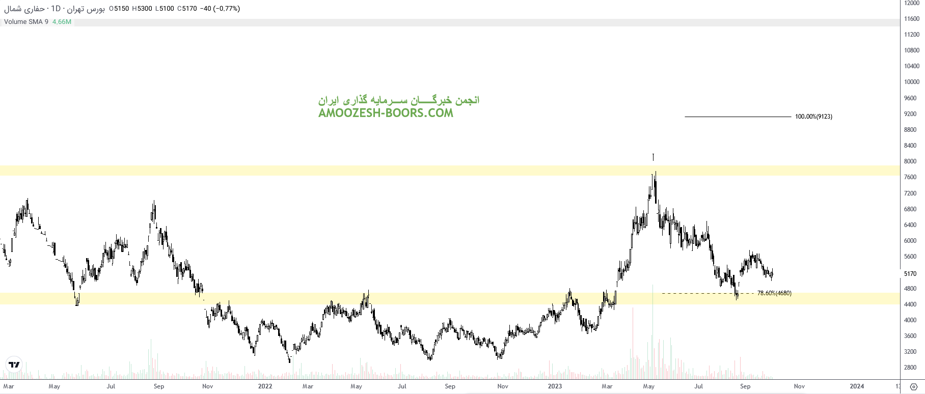 قیمت سهم حفاری ن پس از شکست فیک مقاومت ناحیه ۷۰۰ تومان و برگشت به زیر این ناحیه، اکنون از حمایت مهم ناحیه ۳۰۰ تومان چرخشی را داشته است که در صورت حفظ این ناحیه اولین مقاومت سهم حفاری ناحیه 700 تومان و در صورت شکست مقاومت بعدی سهم حفاری ناحیه 1000 تومان در نظر گرفته خواهد شد.
