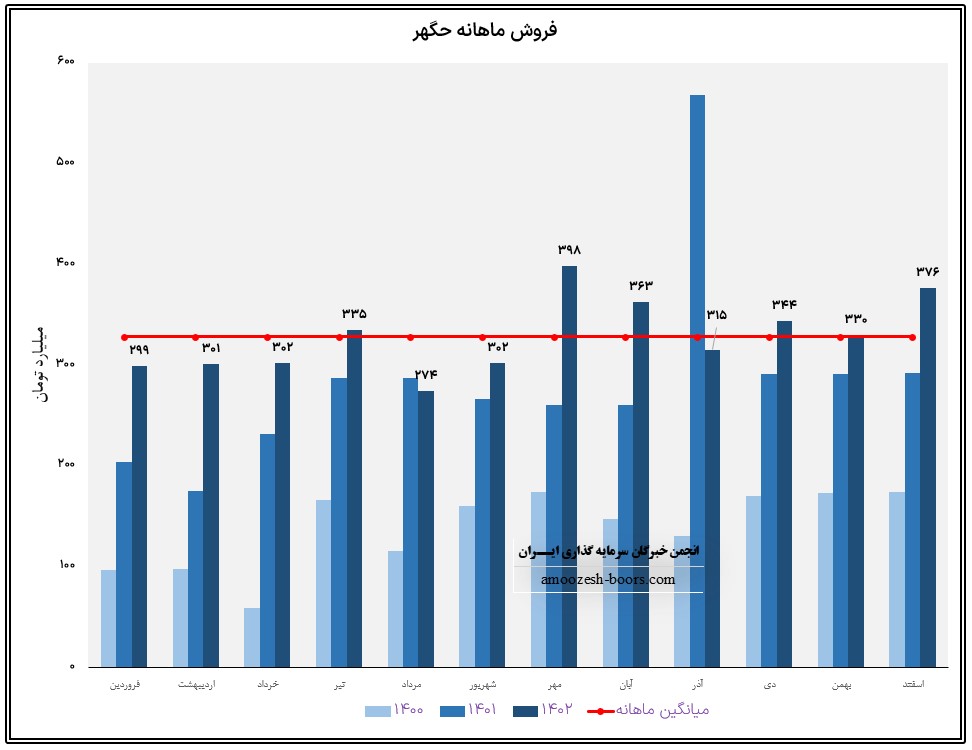 نماد حگهر طی 11 ماه به فروش 3561.8 میلیارد تومان دست یافته است که در مقایسه با مدت مشابه افزایش 14 درصدی داشته و طی این مدت 4% بیشتر از کل درآمد سال گذشته درامد زایی داشته است.