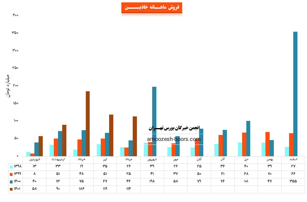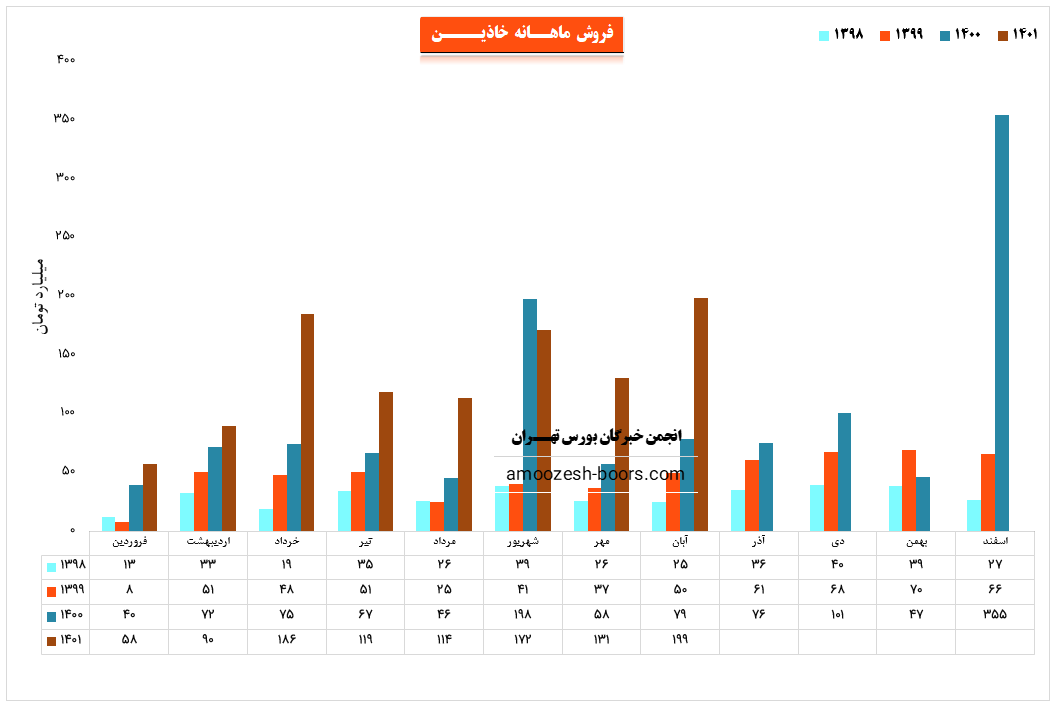 سهم خاذین در مرداد ماه حدود بیش از 21400 دست از محصولات خود را به فروش رسانده که این میزان در مقایسه با حجم فروش ماه گذشته خود حدود 11% کاهش پیدا کرده است.