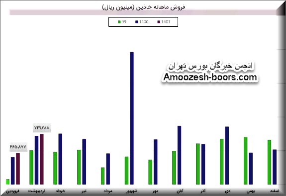 خرداد با رشد 1160 میلیارد ریال فروش ثبت کرده است که نسبت به دوره 1 ماهه مشابه سال قبل 54% افزایش داشته است.همچنین در 3ماهه 2639 میلیارد ریال فروش داشته و نزدیک به مدت مشابه قبل است