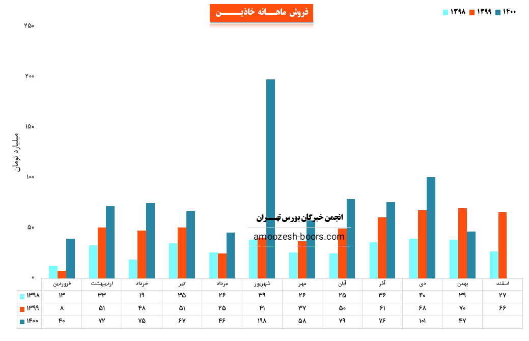خاذین در دی ماه 86 میلیارد تومان محقق نموده است که افزایش 45 درصدی نسبت به ماه گذشته و رشد 28 درصدی نسبت به مدت مشابه سال گذشته را نشان میدهد .