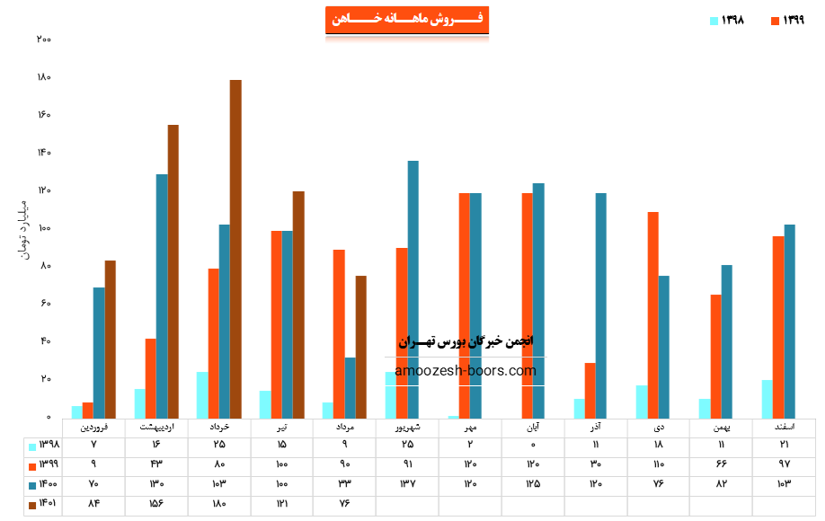 سهم خاهن با ثبت فروش ۴۲۰ میلیارد تومانی در پایان سه ماهه ابتدایی سال توانست حدود ۲۳ % از پیش بینی فروش سالانه خود را محقق سازد.