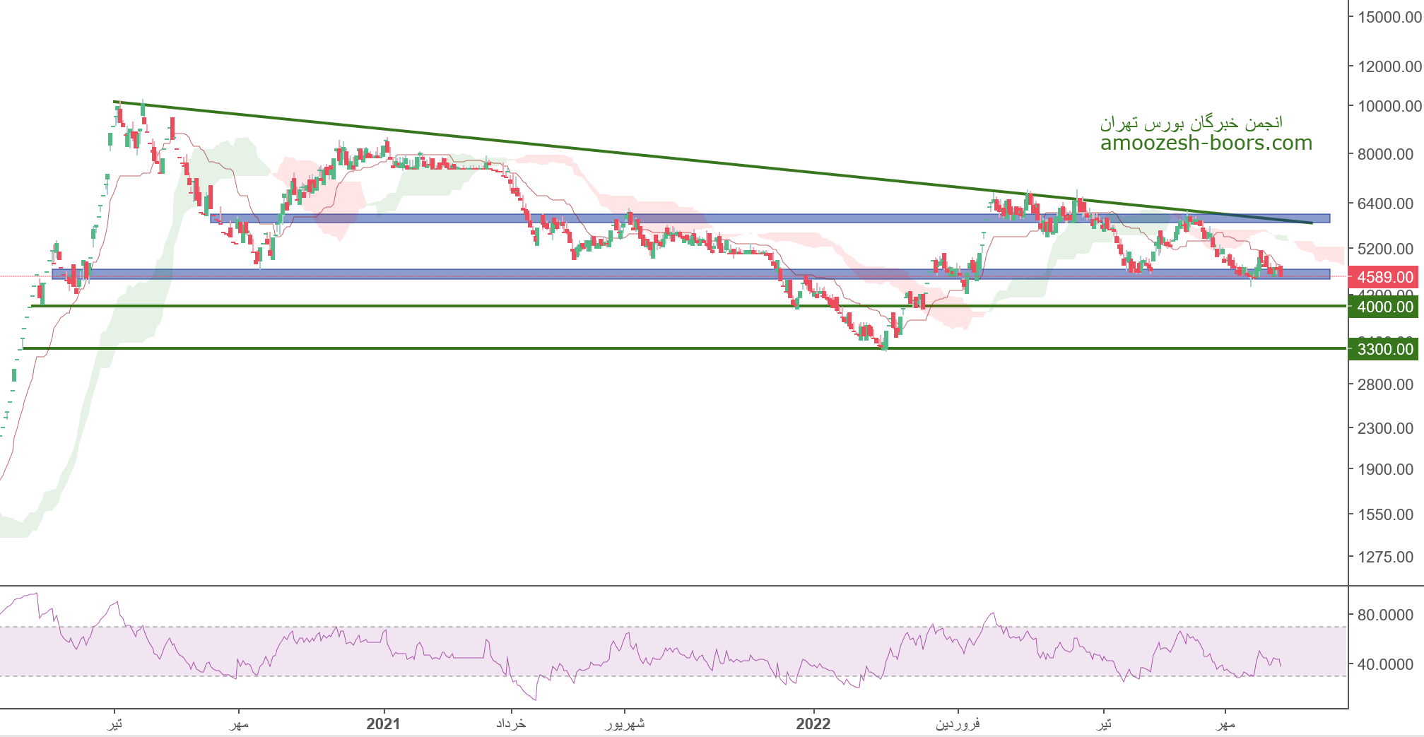 نماد خاهن (شرکت آهنگری تراکتور سازی) در ادامه اصلاح خود حمایت 4500 ریال را دارا میباشد، در صورت تثبیت قیمت، حرکت سهم تا 6000 ریال دور از ذهن نخواهد بود، همچنین در صورت از دست دادن این سطح حمایتی، حمایت بعدی سهم خاهن 4000 ریال در نظر گرفته خواهد شد.