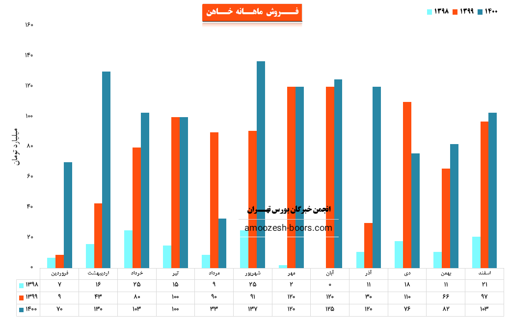 شرکت در انتهای آذر ماه حدود 43 درصد از پیش بینی فروش ۶ ماهه دوم خود را تحقق بخشیده فلذا در خصوص پیش بینی فروش سه ماهه باقیمانده سال 1400 مبلغ 313 میلیارد تومان را به عنوان پیش بینی فروش سه ماه باقیمانده سال اعلام کرده که در مقایسه با فروش محقق شده سه ماهه سوم با 15 درصد افت در نظر گرفته شده است.