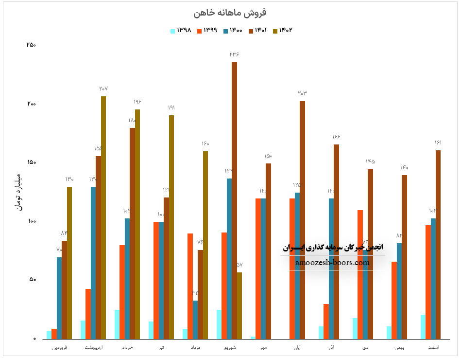 مجموع عملکرد 5 ماهه نماد خاهن در مقایسه با مدت مشابه 43% بهبود داشته و طی این مدت 49% از کل درآمد سال قبلی محقق شده است.