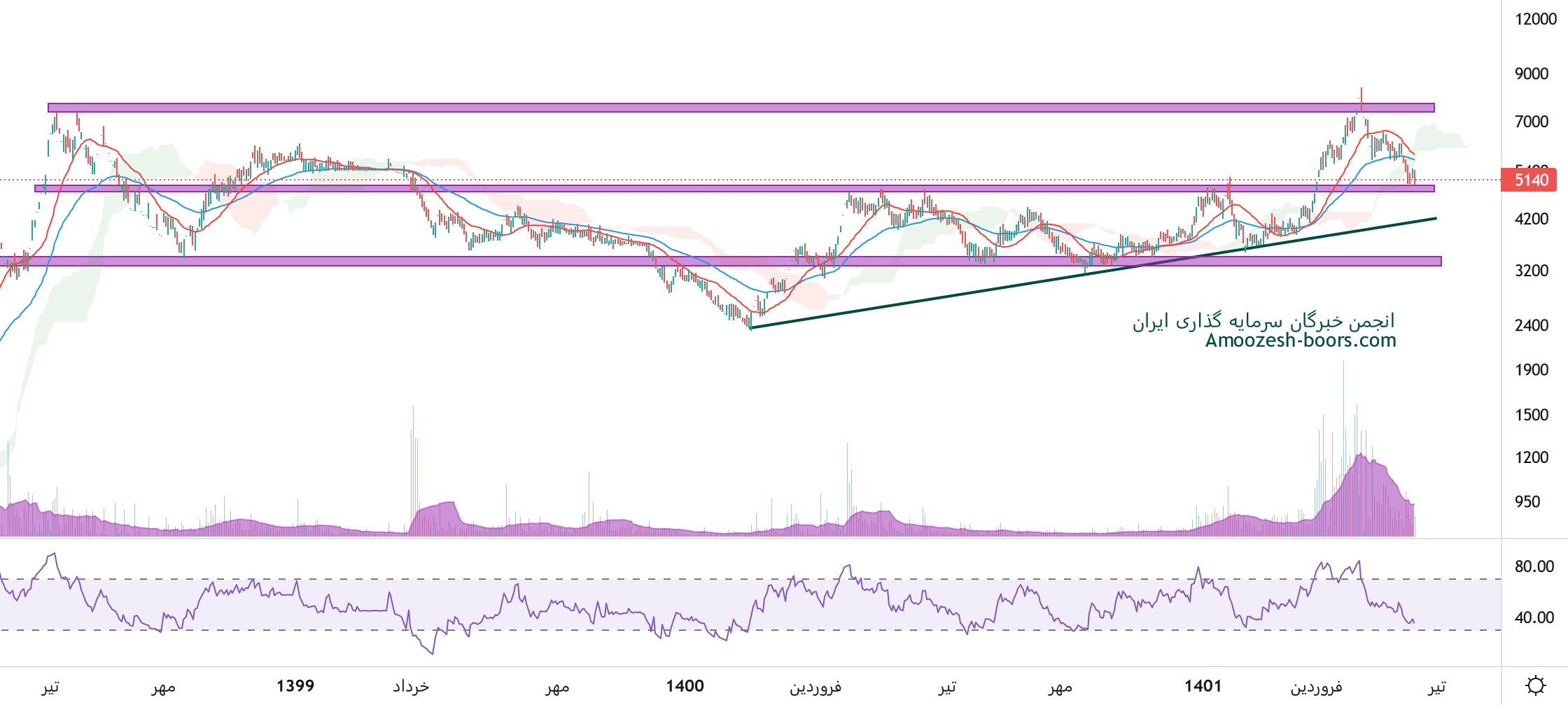 نمودار خاهن در محدوده کم ریسکی قرار گرفته باید منتظر واکنش قیمت یه محدوده حمایتی 5000 ریال بود، در صورت تثبیت و بیس سازی سهم خاهن در این محدوده انتظار حرکت سهم تا محدوده 8000 ریال را داریم، اما در صورت شدن یافتن فشار فروش و ادامه دار شدن اصلاح و شکست محدوده حمایتی ذکر شده، 4300 و 3300 ریال به ترتیب حمایت های سهم خاهن در نظر گرفته خواهند شد.