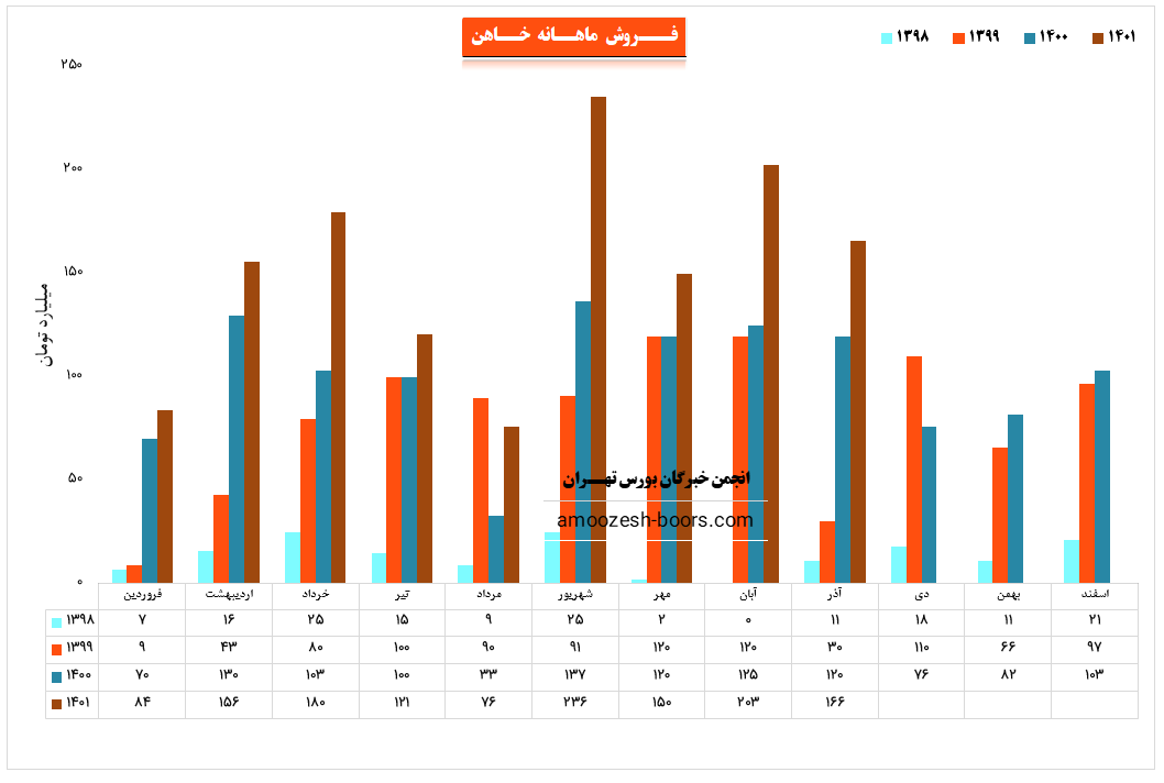 نماد خاهن در آذر ماه حدود بیش از 1750 تن از محصولات خود را به فروش رساند که این میزان در مقایسه با ماه گذشته 18% کاهش پیدا کرده است.