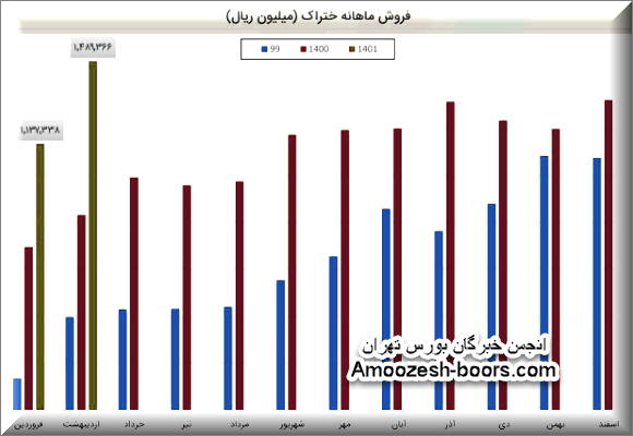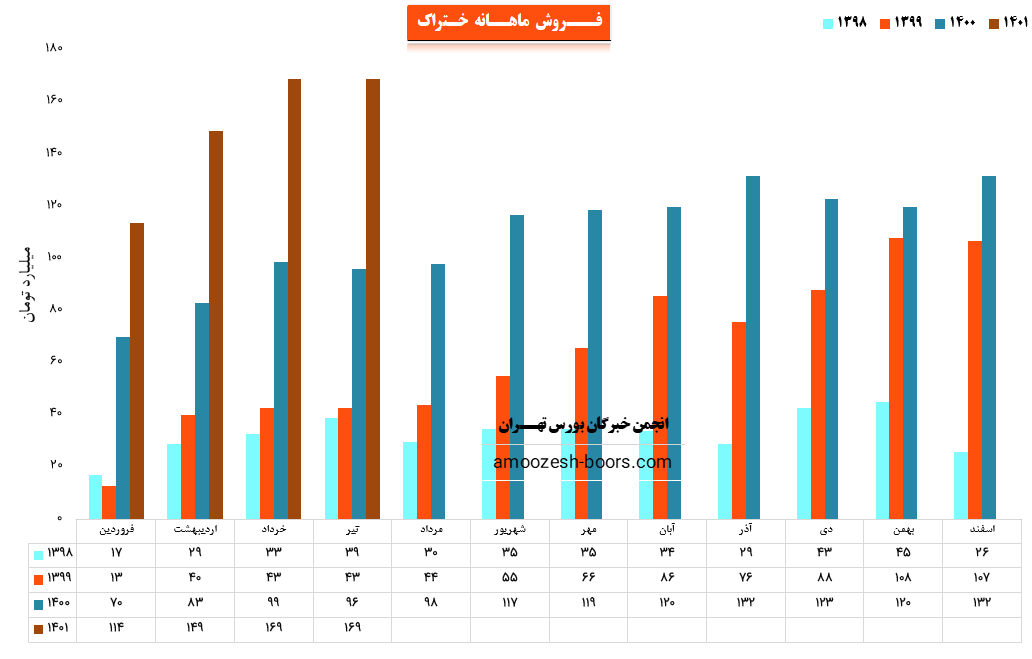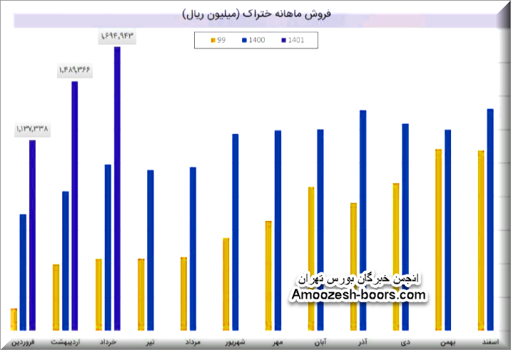 نماد ختراک در تیر ماه حدود بیش از 5200 تن از محصولات خود را به فروش رسانده که این میزان در مقایسه با حجم فروش ماه گذشته خود حدود نیم درصد کاهش پیدا کرده است.