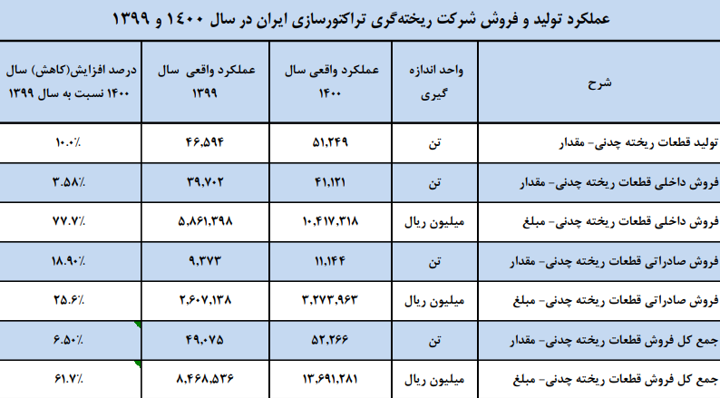 نماد ختراک (شرکت ریخته گری تراکتور سازی ایران) با ثبت فروش 432 میلیارد تومانی در انتهای 3 ماهه ابتدایی سال توانست حدود 22% از پیشبینی فروش سالانه خود را محقق سازد.