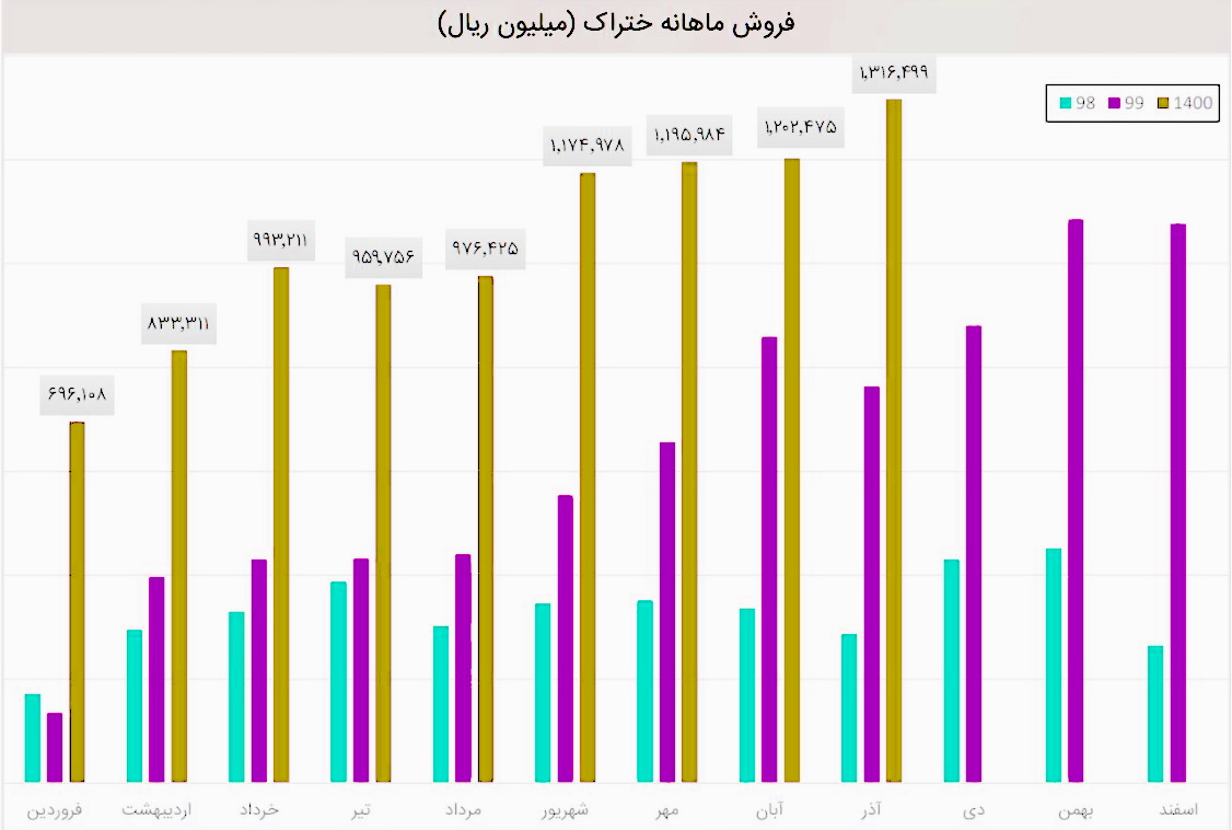 (75%) درصد از درآمد شرکت درین ماه مربوط به فروش داخلی و (25%) درصد آن مربوط به کل صادرات شرکت است. درآمد شرکت در این دوره نسبت به ماه قبل 10% افزایش و نسبت به میانگین ماه های قبل 24% افزایش داشته است. شرکت نسبت به دوره 1 مشابه سال قبل 23% افزایش درآمد داشته است.