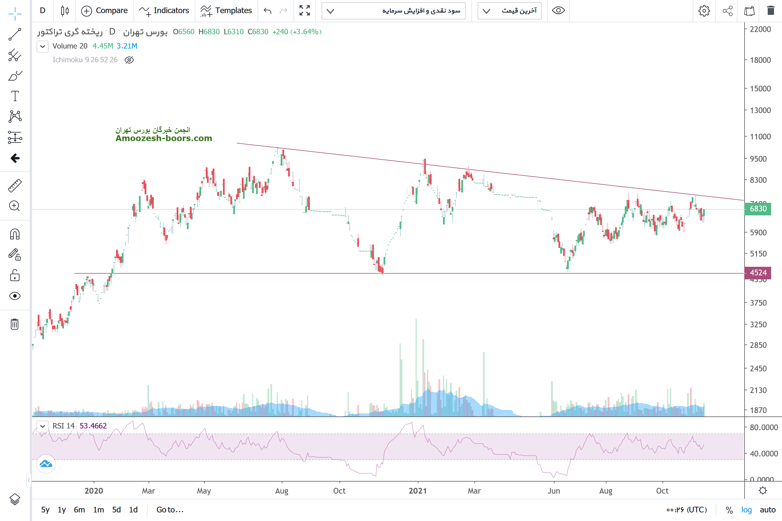 در حال حاضر پیش بینی ادامه تریدینگ رنج میباشد و مقاومت 7000 و حمایت 5500 برای سهم در نظر گرفته می شود .