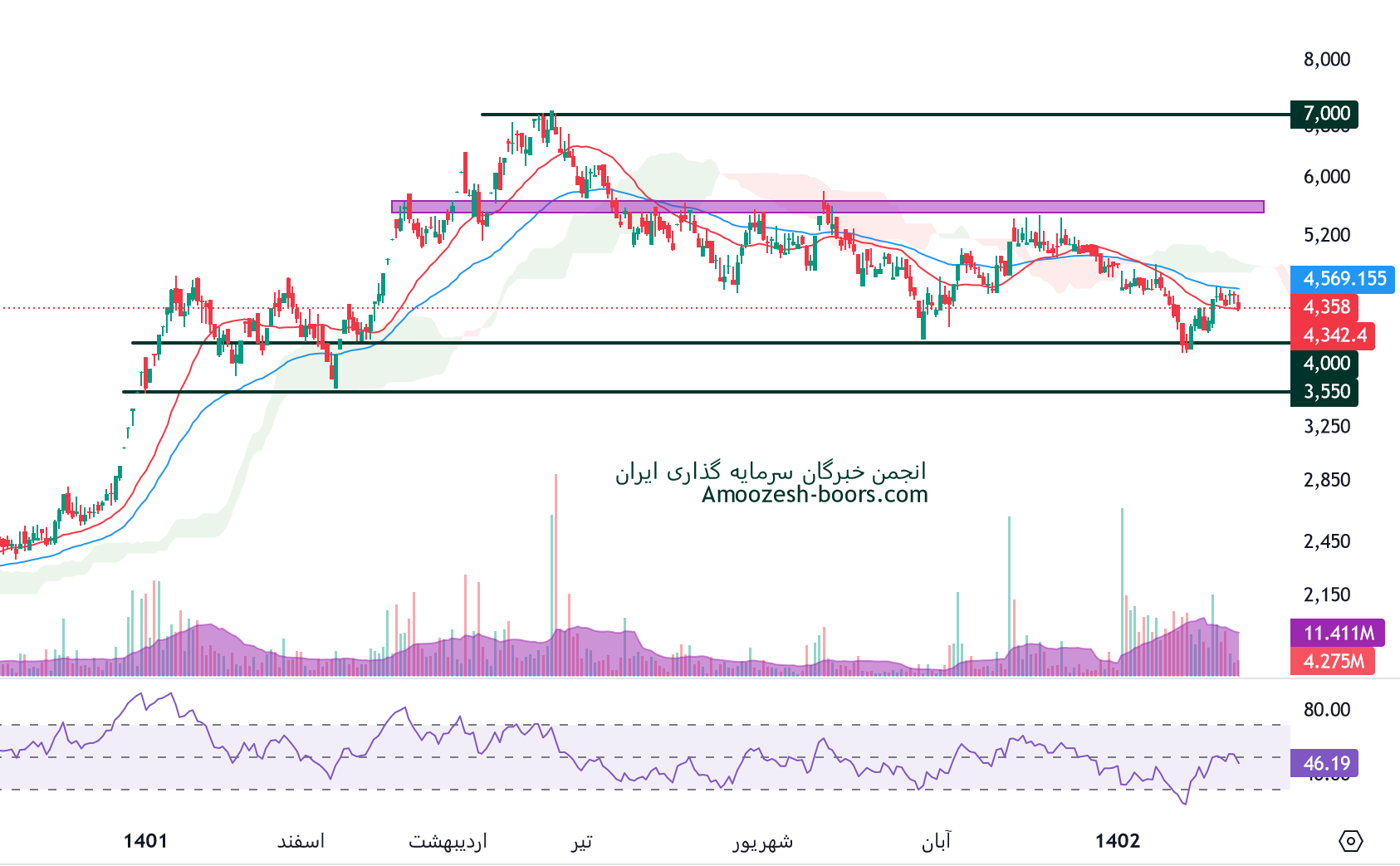 تحلیل تکنیکال سهم ختراک نشان میدهد که قیمت در محدوده مقاومتی 4000 ریال و حمایتی 5700 ریال در حال نوسان میباشد، در صورت شکست هر یک از سطوح، مقاومت بعدی سهم ختراک 7000 ریال و در صورت ایجاد فشار فروش حمایت بعدی ختراک 3550 ریال در نظر گرفته میشوند.