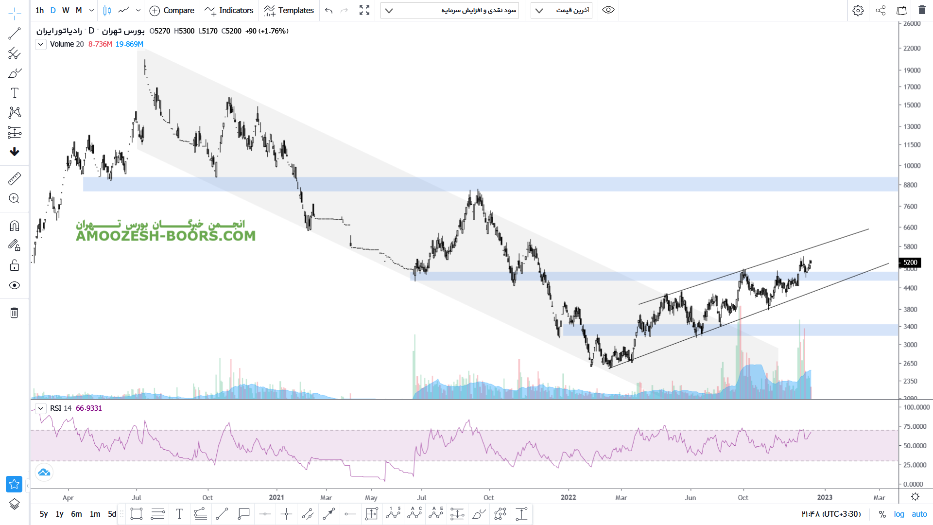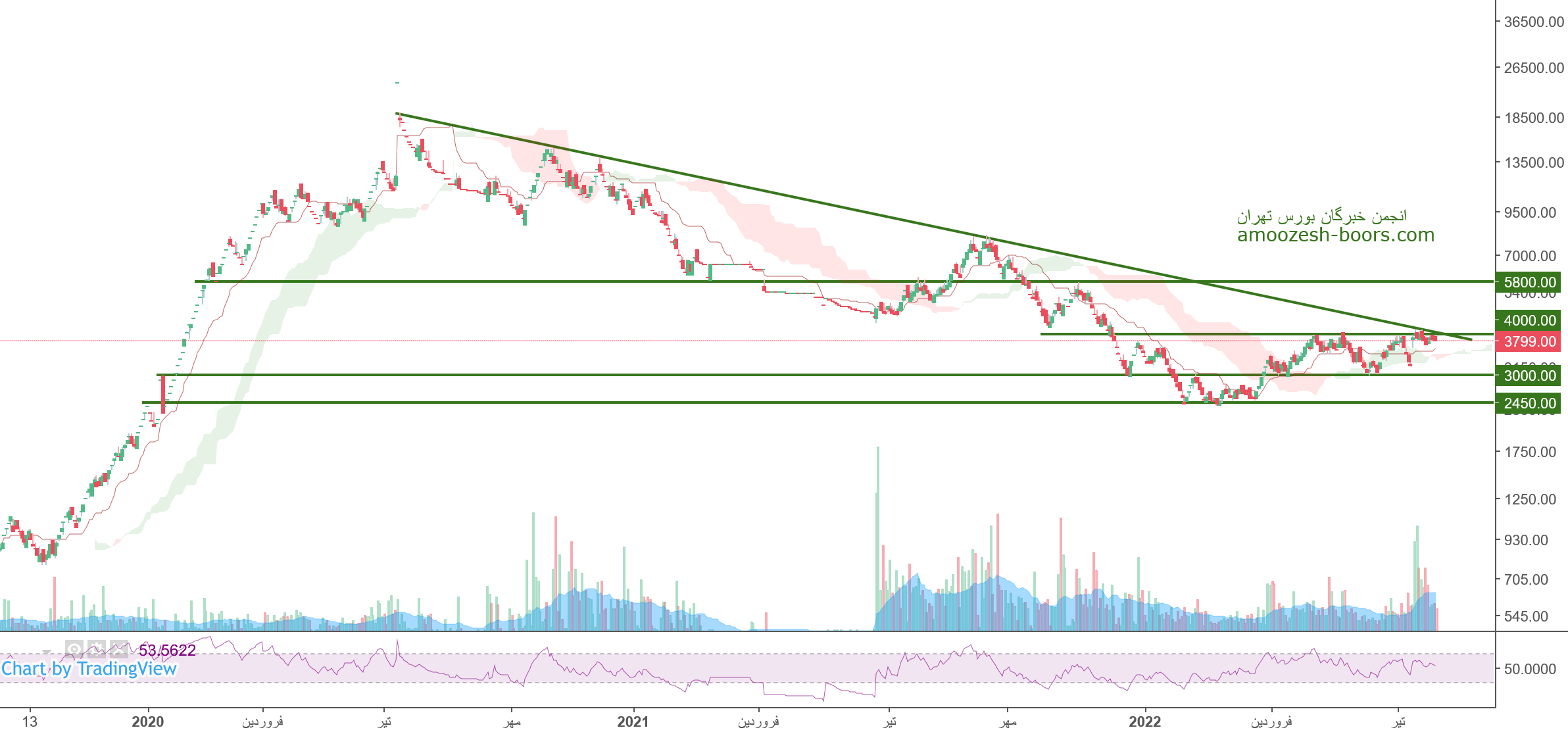 نماد ختور(شرکت رادیاتور ایران) در حال حاضر مقاومت 4000 ریال را دارا میباشد، در صورت عبور از این مقاومت، حرکت سهم تا 5800 ریال دور از ذهن نخواهد بود، همچنین در صورت اصلاح، حمایت بعدی سهم ختور 3000 ریال در نظر گرفته خواهد شد، که در این صورت حد ضرر فعال میگردد.