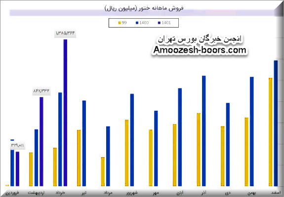 ختور در خرداد ماه 1385 میلیارد ریال فروش زد که (99%) درصد آن مربوط به فروش داخلی و (1%) درصد آن مربوط به کل صادرات شرکت است.