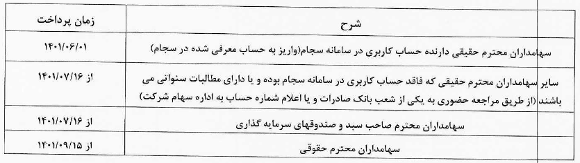 احتراماً جدول زمانبندی پرداخت سود سهامداران نماد خدیزل (شرکت بهمن دیزل) به شرح جدول ذیل تقدیم حضورتان می گردد: