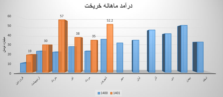 سهم خریخت (شرکت صنایع ریخته گری ایران) در آبان ماه ۱۴۰1 حدود مبلغ 60 میلیارد تومان درآمد داشته که این میزان در مقایسه با ماه گذشته 20% و همچنین در مقایسه با مدت مشابه سال گذشته 71% رشد درآمد پیدا کرده است.