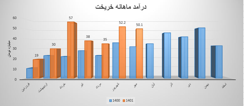 سهم خریخت (شرکت صنایع ریخته گری ایران) در آذر ماه ۱۴۰1 حدود مبلغ 74 میلیارد تومان درآمد داشته که این میزان در مقایسه با ماه گذشته 23% و همچنین در مقایسه با مدت مشابه سال گذشته 61% رشد درآمد پیدا کرده است.