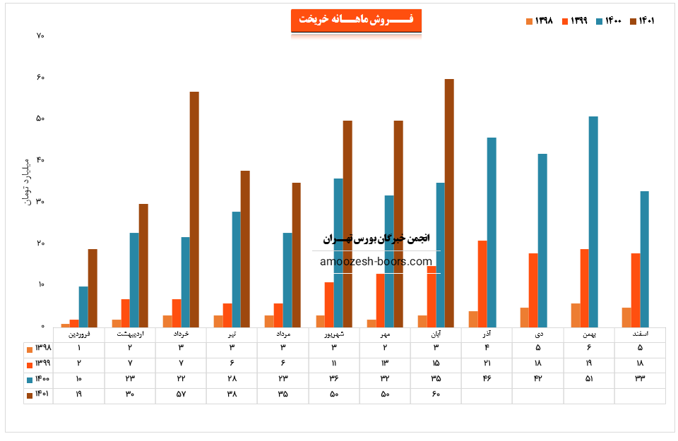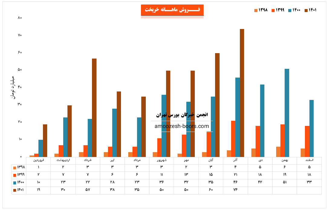 سهم خریخت در آذر ماه حدود 1550 تن از محصولات خود را به فروش رسانده که این میزان در مقایسه با حجم فروش ماه گذشته خود حدود 10% افزایش پیدا کرده است.