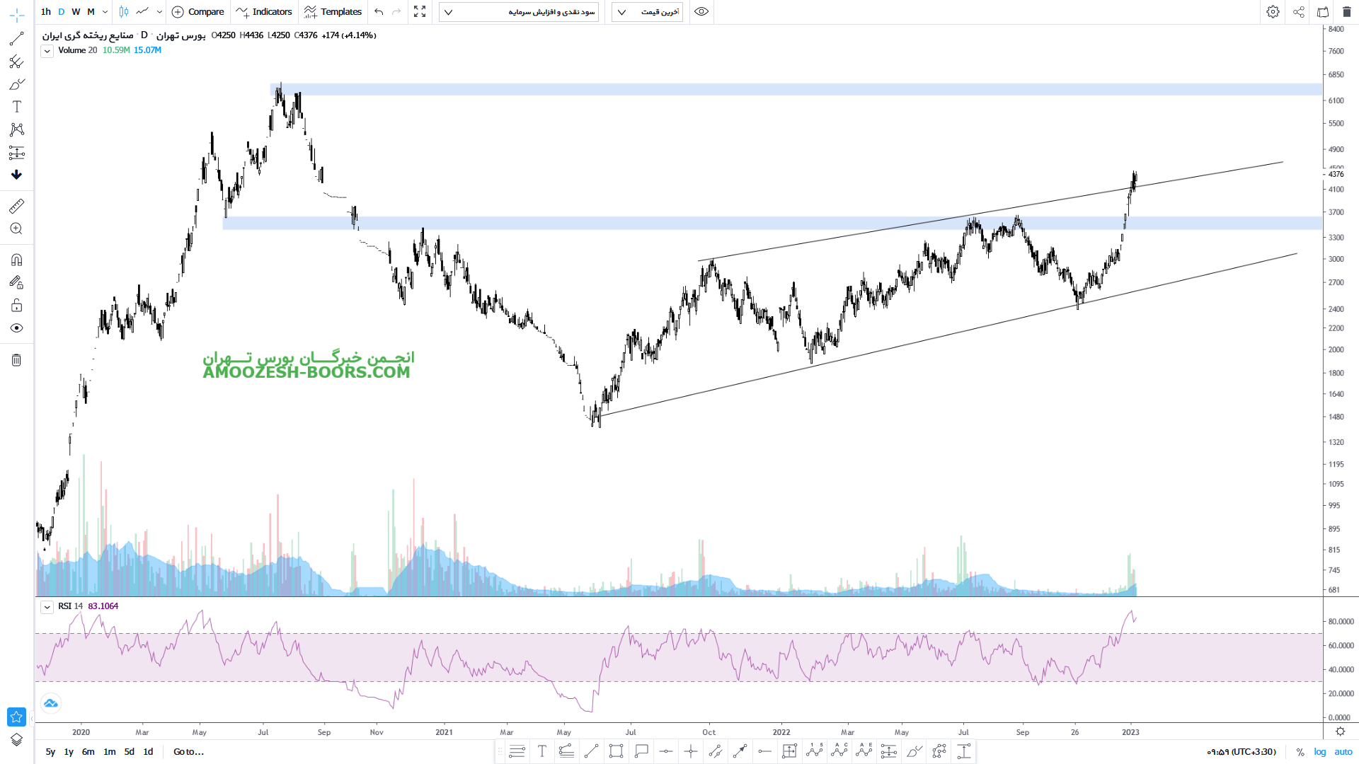 سهم خریخت (شرکت صنایع ریخته گری ایران) در حال حاضر مقاومت 3100 ریال را دارا میباشد، در صورت عبور از مقاومت، حرکت سهم تا 3600 ریال دور از ذهن نخواهد بود، همچنین در صورت ورورد به فاز اصلاحی، اولین حمایت سهم 2600 ریال خواهد بود.
