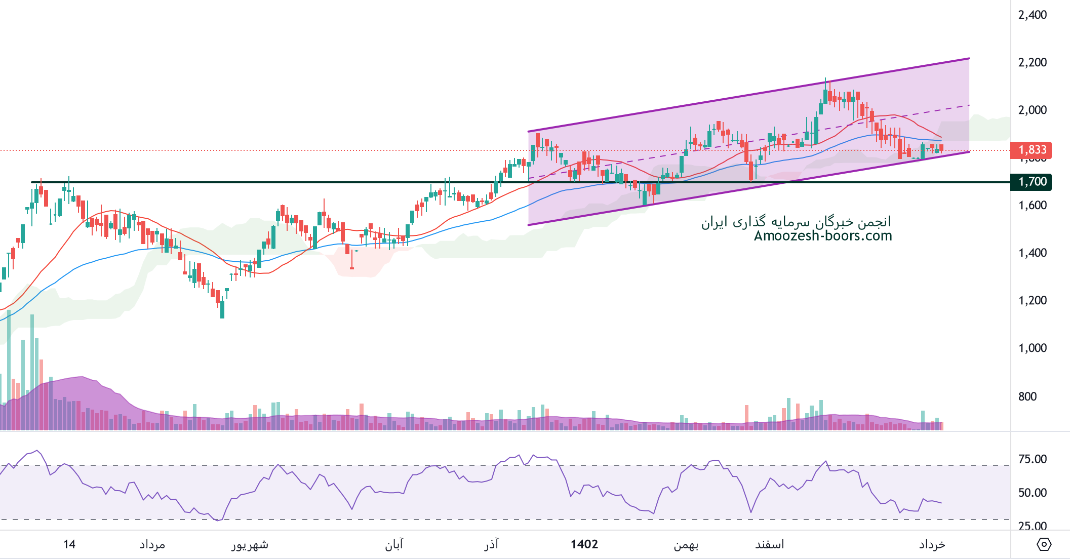 نماد خریخت که متاثر از جو منفی کل بازار کاماکان در فاز اصلاحی به سر میبرد، در حال حاضر به محدوده حمایتی رسیده، باید منتظر طرز واکنش قیمت به این محدوده حمایتی ماند ( حمایت خریخت 1800 ریال میباشد )، همچنین در صورت از دست رفتن این حمایت، حمایت بعدی نماد خریخت 1700 ریال ارزیابی میگردد، در صورت تثبیت قیمت در این محدوده، اولین مقاومت سهم خریخت محدوده 2200 ریال در نظر گرفته خواهد شد.