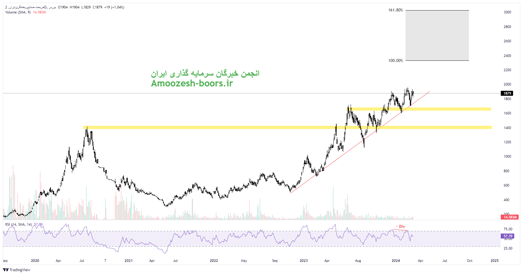 مهمترین مقاومتهای سهم خریخت در مسیر صعودی نواحی مقاومتی ۲۳۰۰ ریال و ۳۰۰۰ ریال در نظر گرفته خواهد شد همچنین در صورت ایجاد عرضه در کلیت بازار و ورود به فاز اصلاحی مهمترین حمایتهای سهم خریخت حمایت خط روند صعودی و حمایت ناحیه ۱۷00 ريال در نظر گرفته خواهد شد.