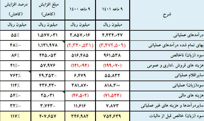 EPS نماد خریخت در 9 ماهه منتهی به آذر سال 1401 معادل 296 ریال ثبت شده که نسبت به مدت مشابه 67% رشد را تجربه نموده است، همچنین درآمد های عملیاتی صنایع ریخته گری ایران رشد 55%، بهای تمام شده رشد 48%، سود عملیاتی رشد 114% و هزینه های مالی رشد 54 درصدی را تجربه نموده است، دلایل افزایش فروش سهم خریخت در این دوره خرید مواد اولیه خارجی از تامین کنندگان اصلی، کاهش توقفات خط تولید و تامیت نقدینگی جهت تقویت سرمایه در گردش میباشد.