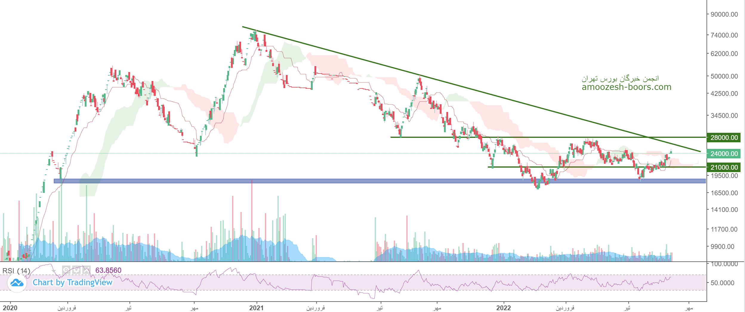 نماد خرینگ (شـرکت رینگسازي مشهد) در حال حاضر مقاومت 26000 ریال را دارا میباشد، در صورت عبور از این مقاومت حرکت سهم تا 28000 ریال دور از ذهن نخواهد بود، همچنین در صورت اصلاح، اولین حمایت سهم خرینگ 21000 ریال خواهد بود که در این صورت حد ضرر فعال میگردد.