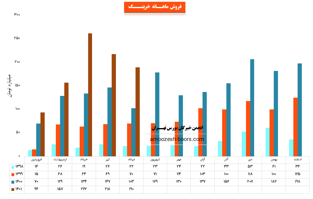 نماد خرینگ در آبان ماه حدود بیش از 501/000 عدد از محصولات خود را به فروش رسانده که این میزان در مقایسه با حجم فروش ماه گذشته خود حدود 34% افزایش پیدا کرده است.
