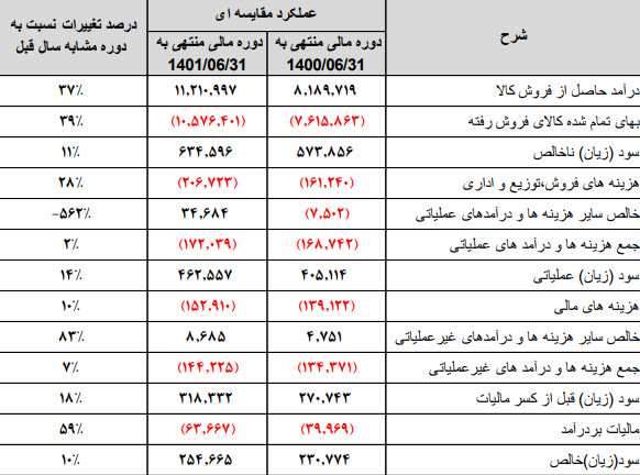 سود عملیاتی: 31 میلیارد تومان که نسبت به دوره مشابه گذشتـه 79% افزایش یافته است.