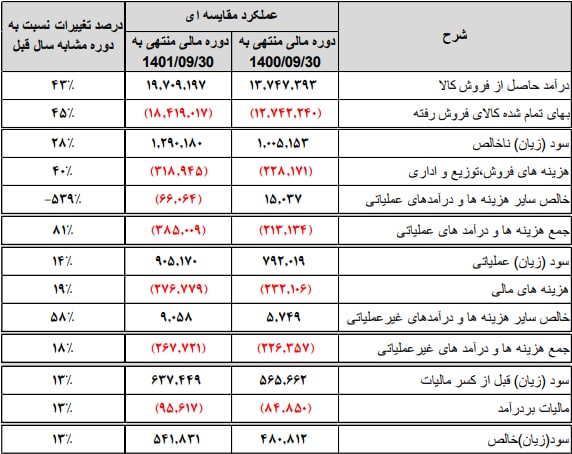 علت افزایش سود عملیاتی خرینگ افزایش نرخ فروش محصولات و فروش بیشتر محصولات با حاشیه سود بالاتر بوده است .سایر تغییرات با اهمیت نماد خرینگ در این دوره به شرح جدول زیر میباشد :
