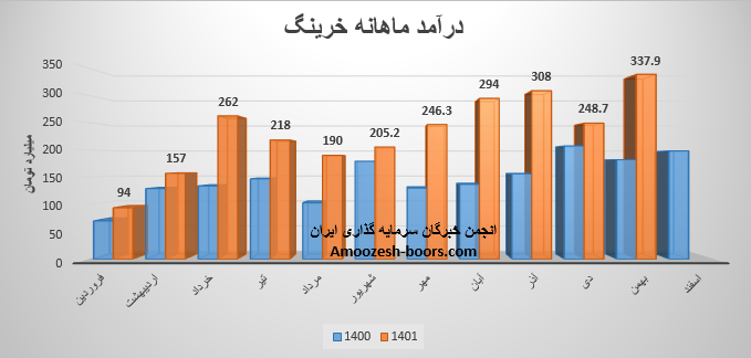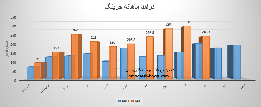 نماد خرینگ با ثبت رکورد جدید در گزارشات ماهانه به درآمد 337.9 میلیارد تومانی رسید به طوری که تغییرات زیر را تجربه نمود؛