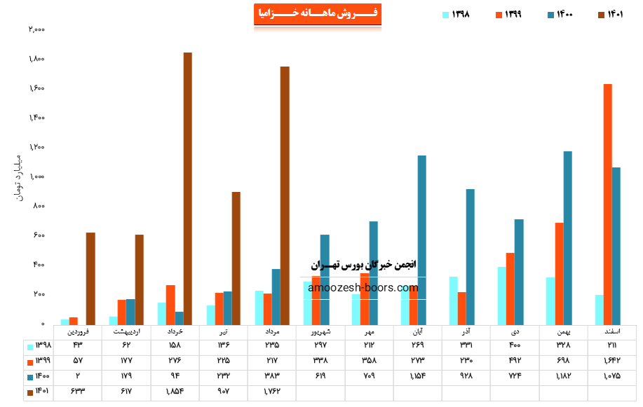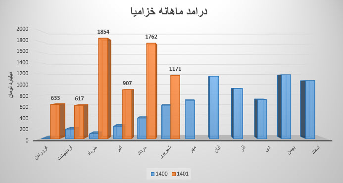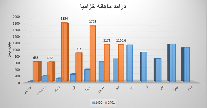 نماد خزامیا (شرکت زامیاد) در مرداد ماه ۱۴۰1 حدود مبلغ 1762 میلیارد تومان درآمد داشته که این میزان در مقایسه با ماه گذشته 94% و همچنین در مقایسه با مدت مشابه سال گذشته 360% رشد درآمد پیدا کرده است.
