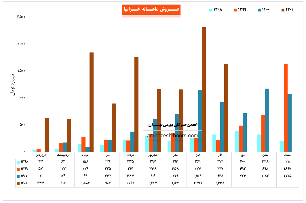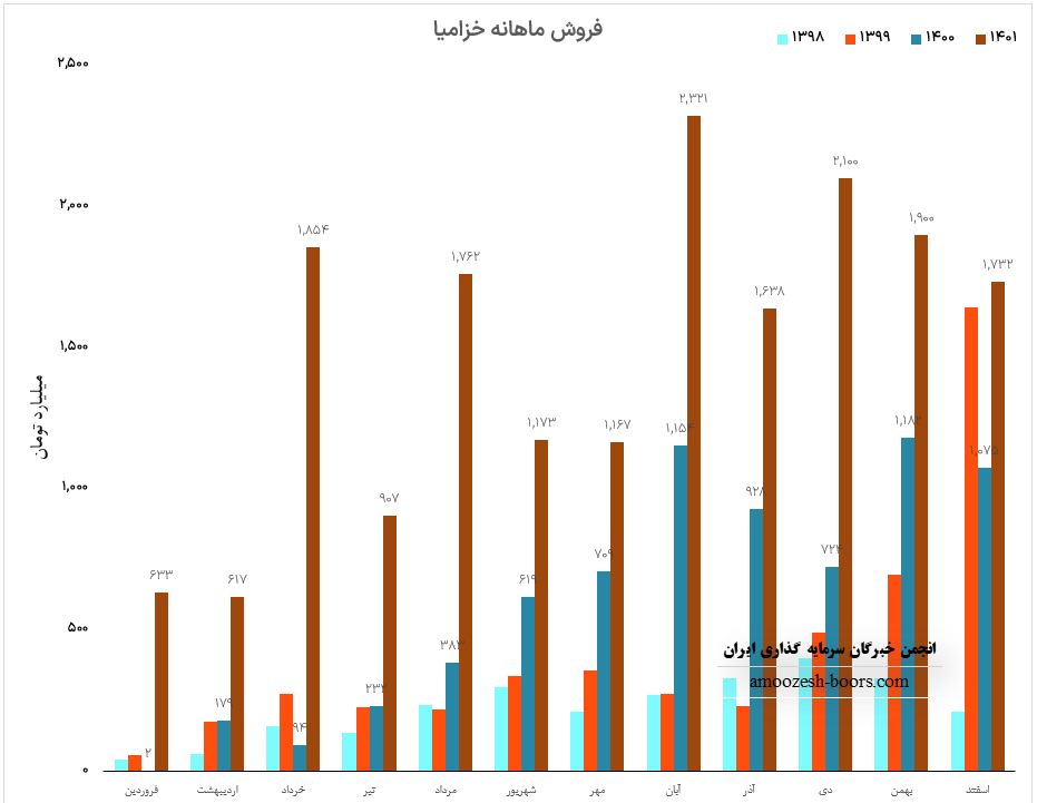 سهم خزامیا در آذر ماه حدود بیش از 4350 دستگاه از محصولات خود را به فروش رسانده که این میزان در مقایسه با حجم فروش ماه گذشته خود حدود 36% کاهش پیدا کرده است.