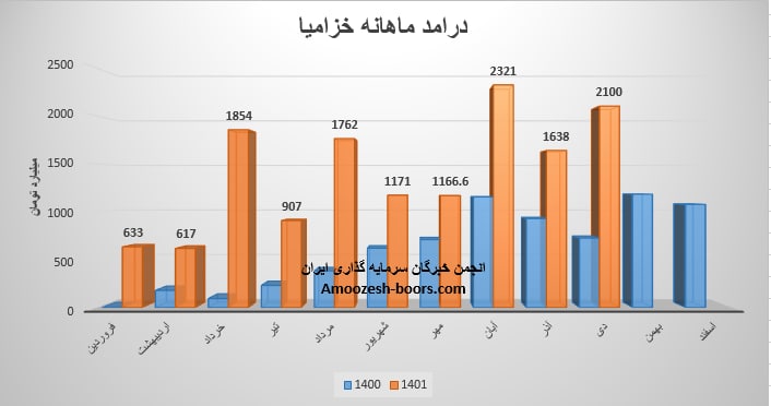 مجموع درآمد نماد خزامیا طی عملکرد 10 ماهه نسبت به مدت مشابه سال قبل 180% رشد داشته است.