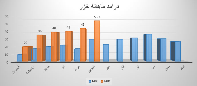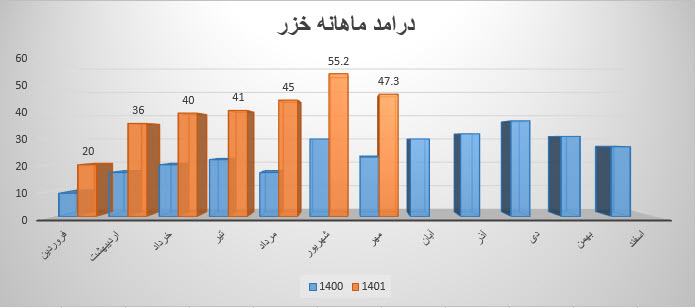 سهم خزر نسبت به دوره 1 ماهه مشابه سال قبل 82% افزایش درآمد داشته است.