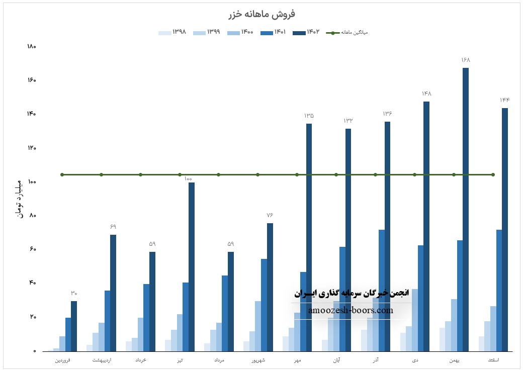 شرکت فنرسازی زر ( خزر ) در بهمن ماه 1402 فروش 167.5 میلیارد تومانی را به دست آورده که افزایش 13 درصدی در مقایسه با ماه گذشته و همچنین رشد 54 درصدی نسبت به متوسط ماهانه داشته است،