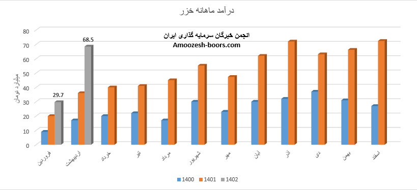 تحلیل بنیادی فنرسازی زر ( نماد خزر ) نشان از تحقق درآمد 68.5 میلیارد تومان در عملکرد ماهانه اردیبهشت ماه سال 1402 دارد، فروش سهم خزر در مقایسه با ماه گذشته 131% و نسبت به مدت مشابه 90% رشد داشته است، محصول اصلی خزر مربوط به محصولات سبک میباشد که در مقایسه با ماه گذشته با افزایش 7 درصدی نرخ فروش و رشد 36 درصدی مقدار فروش همراه بوده است، مجموع عملکرد دو ماهه خزر نسبت به مدت مشابه 433% بهبود داشته و 16% از درامد سال قبل تحقق یافته است.