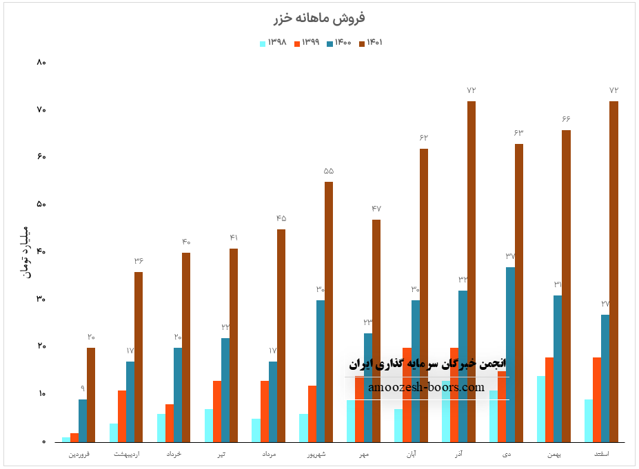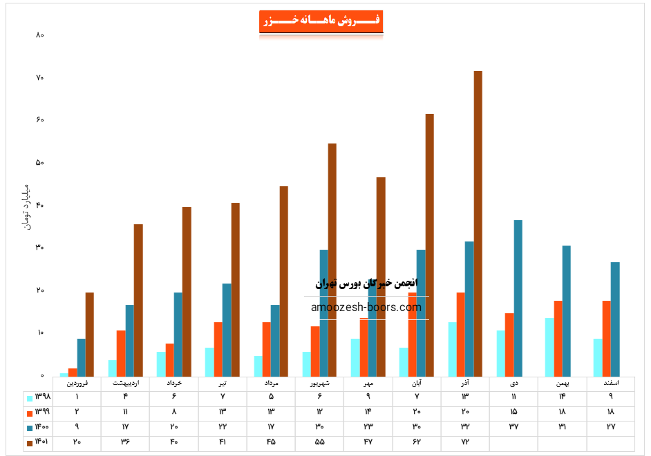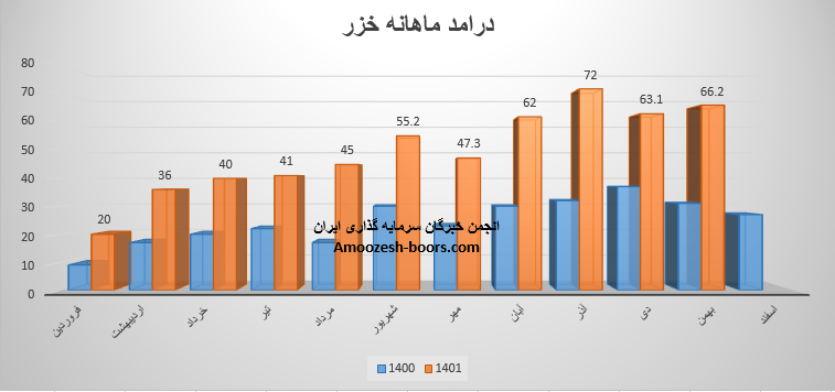 نماد خزر (شرکت فنرسازی زر) در آذر ماه ۱۴۰1 حدود مبلغ 72 میلیارد تومان درآمد داشته که این میزان در مقایسه با ماه گذشته 16% و همچنین در مقایسه با مدت مشابه سال گذشته 125% رشد درآمد پیدا کرده است.