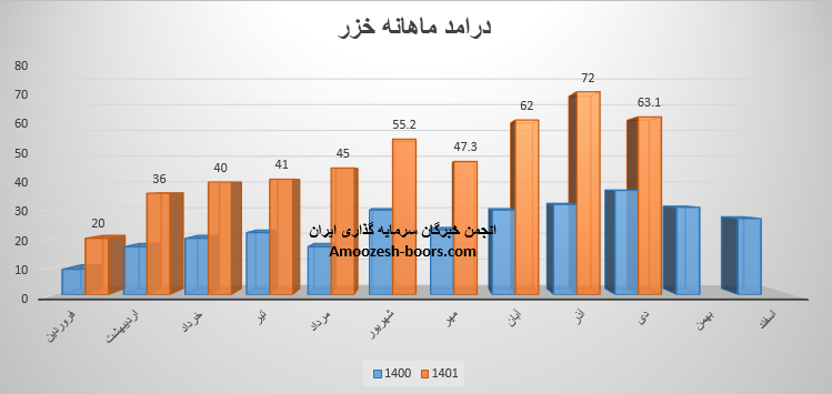 درآمد بهمن ماه نماد خزر معادل 66.2 میلیارد تومان گزارش شده است که نسبت به ماه گذشته افزایش 5 درصدی، نسبت به متوسط ماهانه افزایش 37 درصدی و نسبت به مدت مشابه افزایش 114 درصدی را تجربه نموده است، 2% از این درآمد از طریق صادرات و مابقی از طریق فروش داخلی تامین گردید، پر فروش ترین محصول سهم خزر محصولات سبک گزارش شده که سهم 51 درصدی از فروش ماهانه را به خود اختصاص داده، مقدار فروش این محصول 6% و نرخ فروش آن افزایش 4 درصدی نسبت به ماه قبل داشته است، مجموع درآمد خزر طی عملکرد 11 ماهه رشد 99 درصدی نسبت به مدت مشابه داشته.